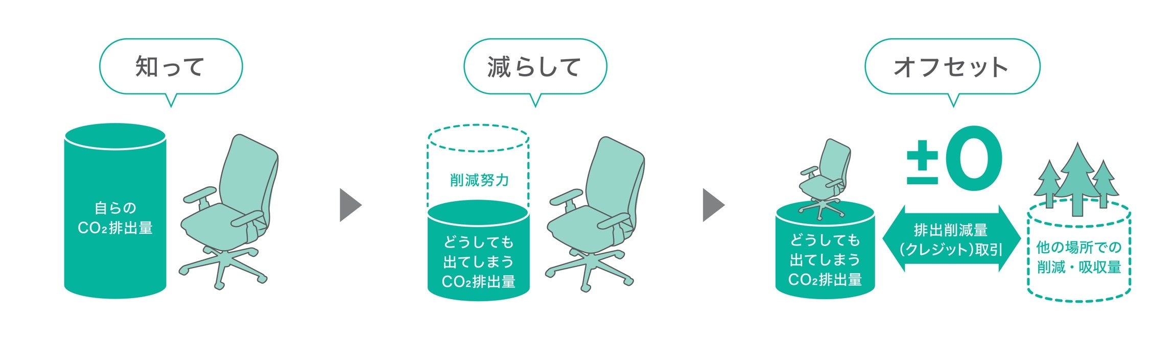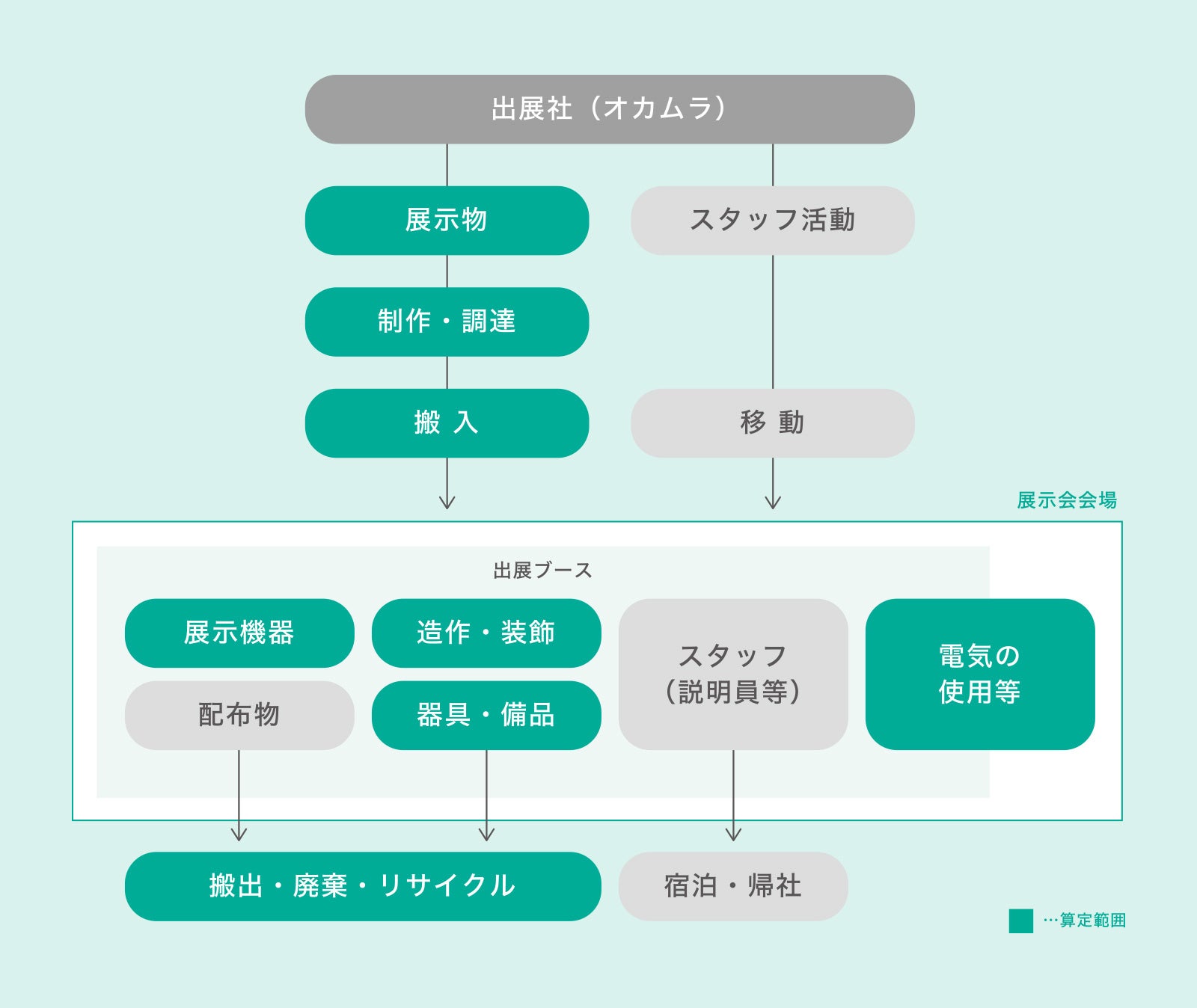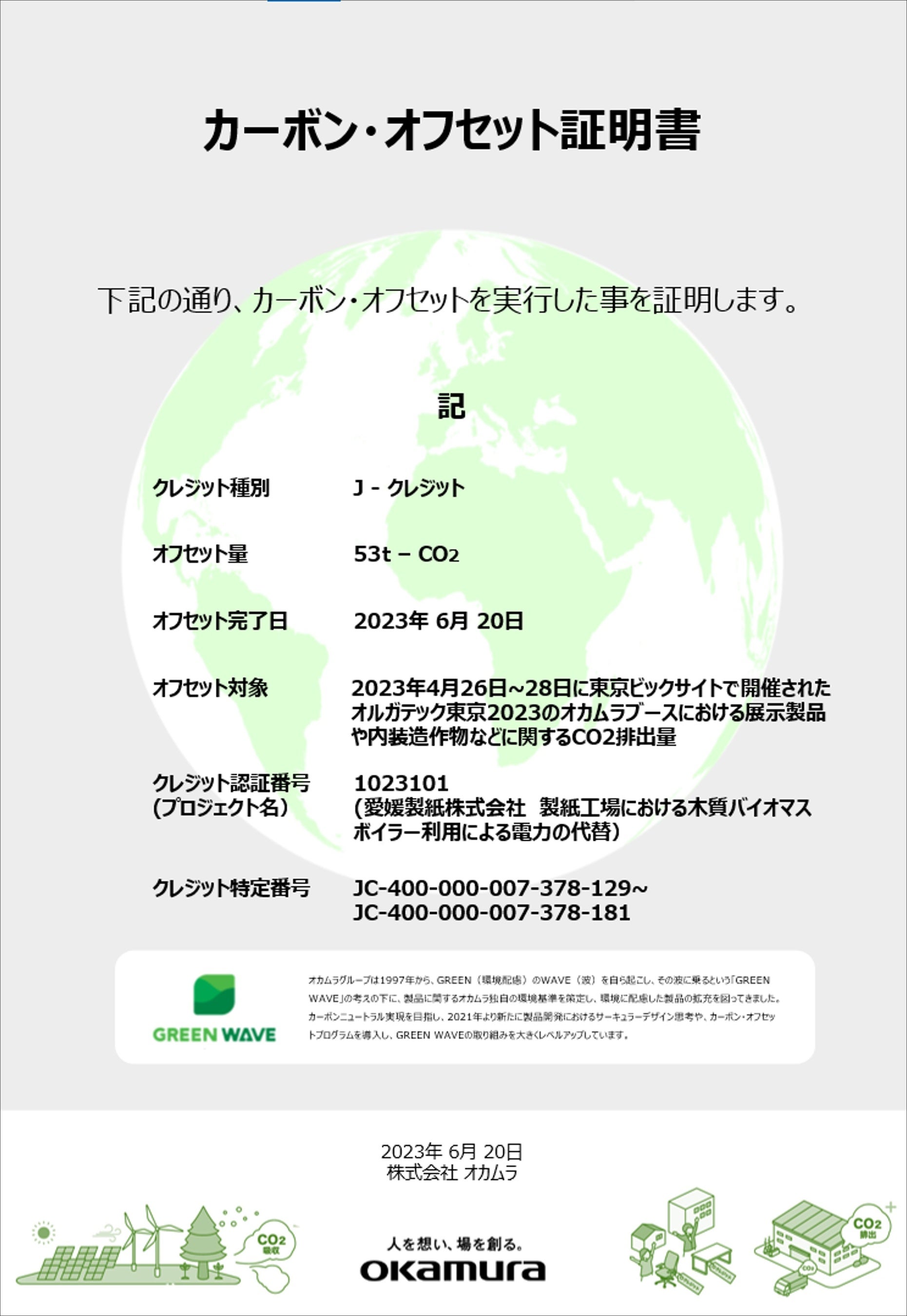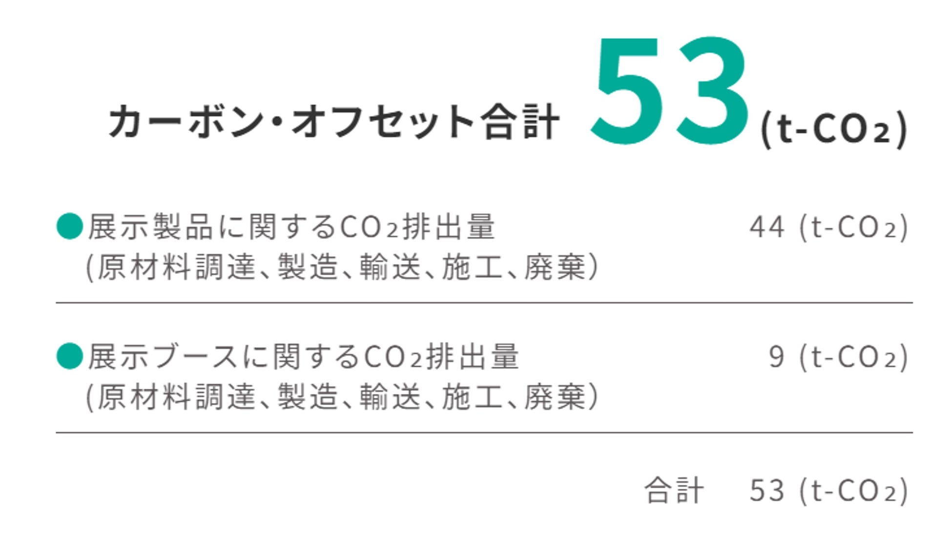 2.展示製品や内装造作物などに関するCO₂排出量を算出し、カーボン・オフセットを実施。