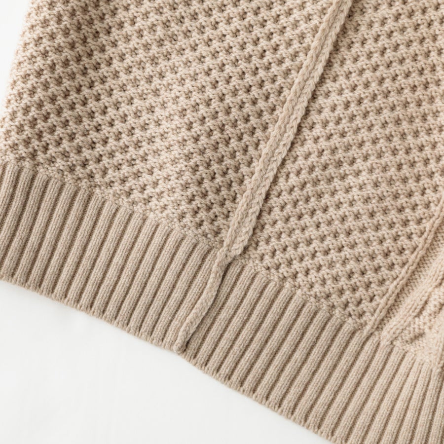 ローゲージには5ゲージのものも多くありますが、やや密度を高く編み込んだ7ゲージを採用することで、分厚すぎず薄すぎない「暖かさ」と「着回しのしやすさ」を実現。