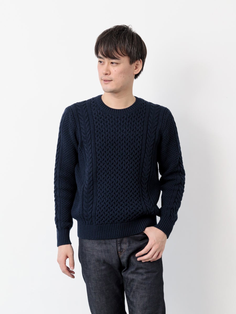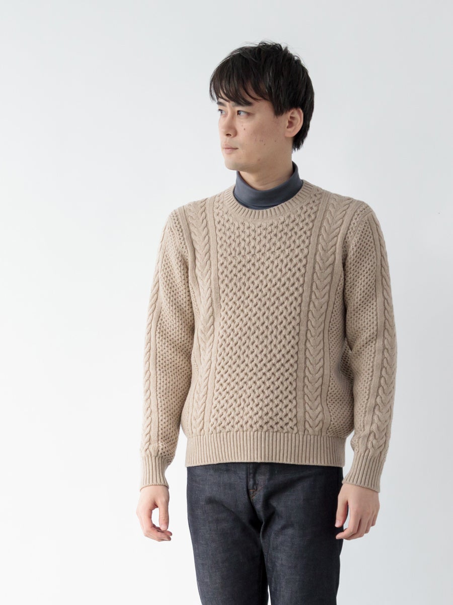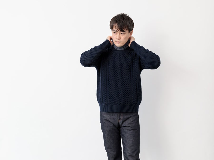 変化のあるケーブル編みニットは、コーディネートに素敵なアクセントを付けてくれます。