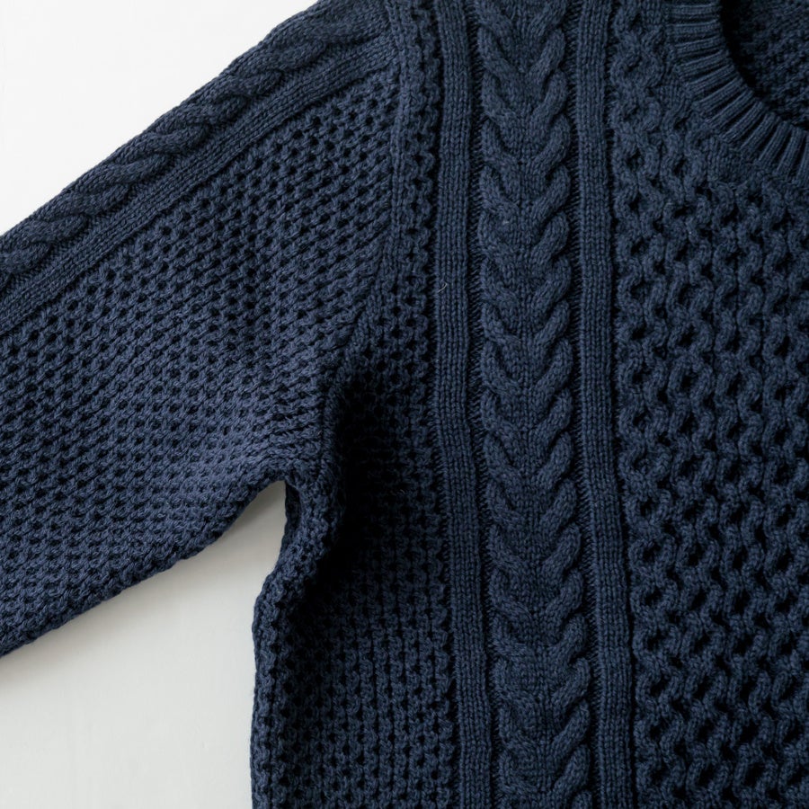 ケーブル編みには様々の柄があしらわれていますが、柄の起源はアイルランドの「アラン諸島」で誕生した「アラン模様」と言われています。