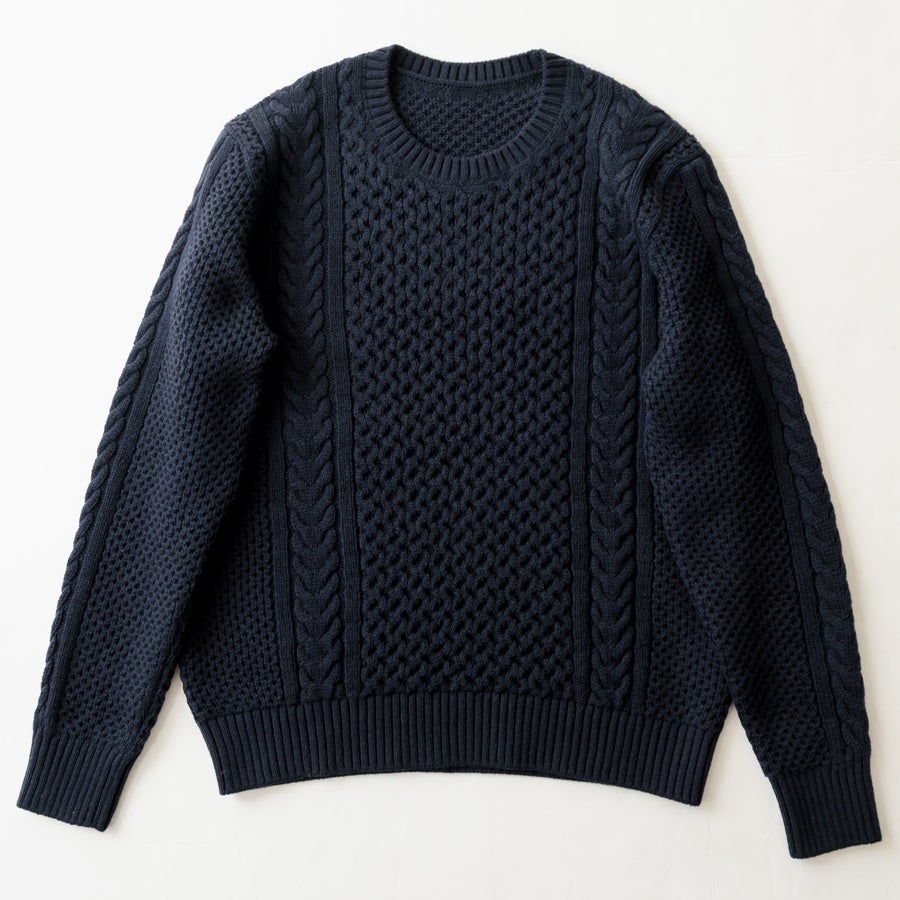 創業約90年、ニットの一大産地・新潟県五泉市でニットづくりを行う「川島」の技術とノウハウを詰め込んで完成した上品なケーブル編みニットです。