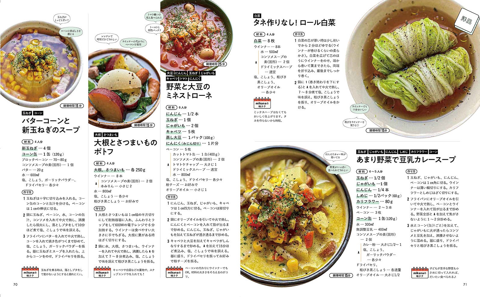 mikanaさん初のレシピ本、『mikanaの日本一おいしい野菜の食べ方』は、旬の野菜を美味しくいただくヒントが満載です。野菜が苦手な方も食べたくなるようなレシピが詰まった一冊になっているので、ぜひチェックしてみてください。