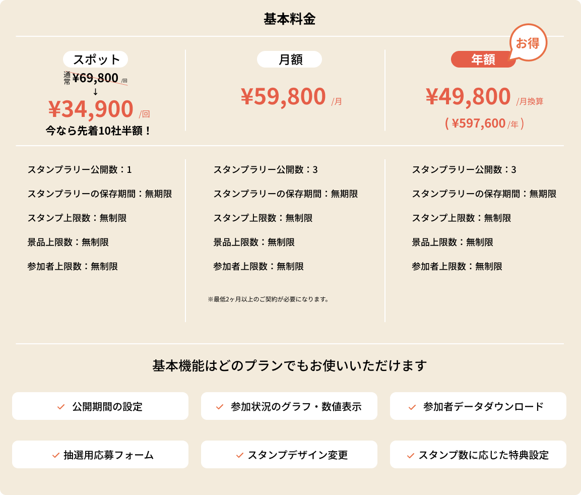 「スマペタ」の提供開始を記念して、「スポット」プランにお申込みいただいた先着10社様に半額でご提供いたします。まずはお試しいただき、システムの使いやすさや、利用者の反応から効果を実感してください。