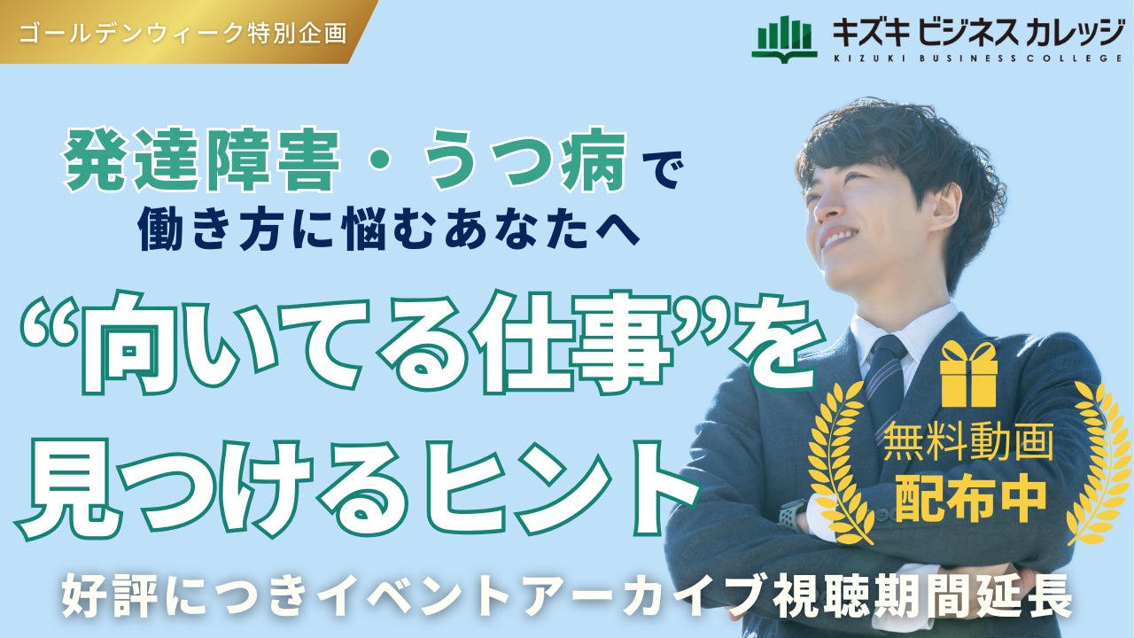【GW特別企画】発達障害・うつ病で働き方に悩むあなたへ “向いてる仕事”を見つけるヒントを無料動画で公開中!【好評につき期間延長】