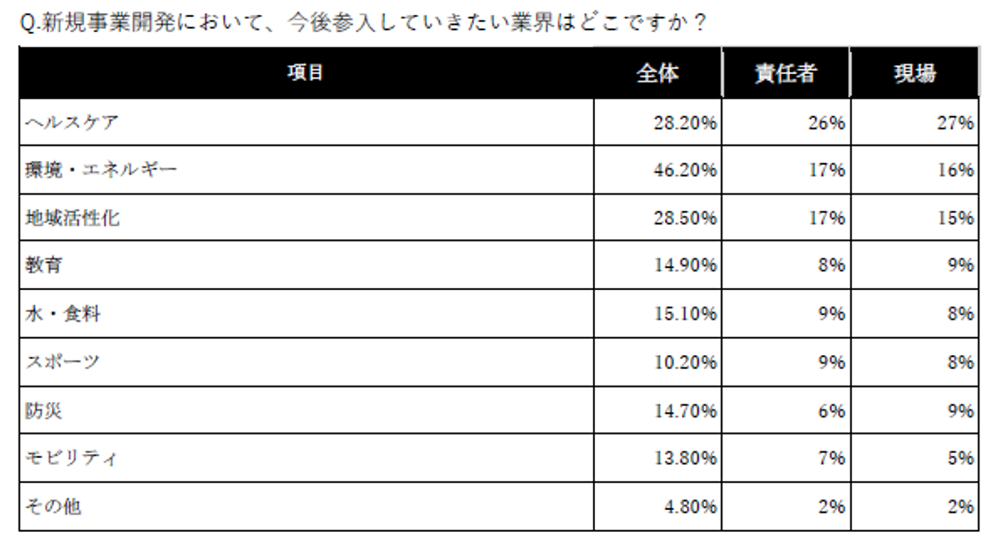・今後参入したい業界1位は環境・エネルギー、2位は地域活性化、3位はヘルスケア