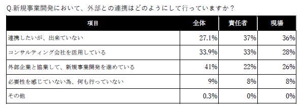 <約半数がまだまだ新規事業の充実度を感じない、一方で外部との連携が進む企業は新規事業の充実度を実感する>