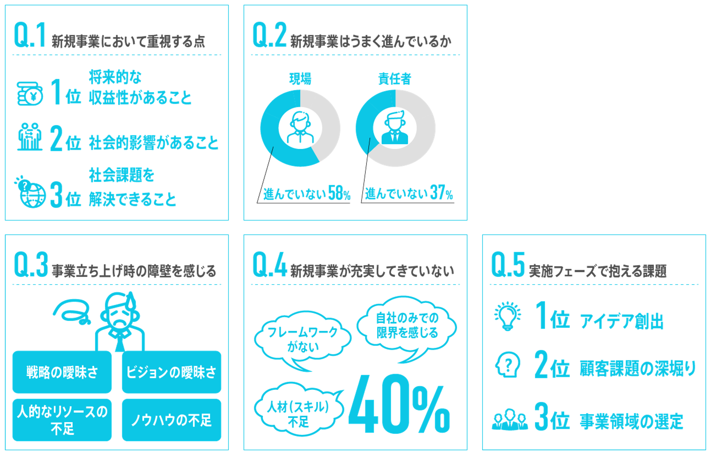 1000人に聞いた国内企業の新規事業の課題に関する実態調査やイノベーションスタジオ/研究組織/事業開発DX等、新ソリューションを発表