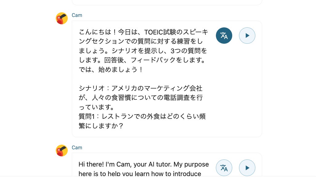 Camblyではスピーキング練習の機会が限られておりネイティブ講師とのレッスンにハードルの高さを感じているユーザーのサポートを目的にCambly AIを開発。日本では2023年8月にリリースされました。