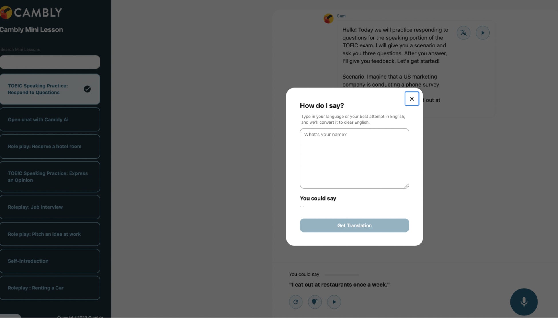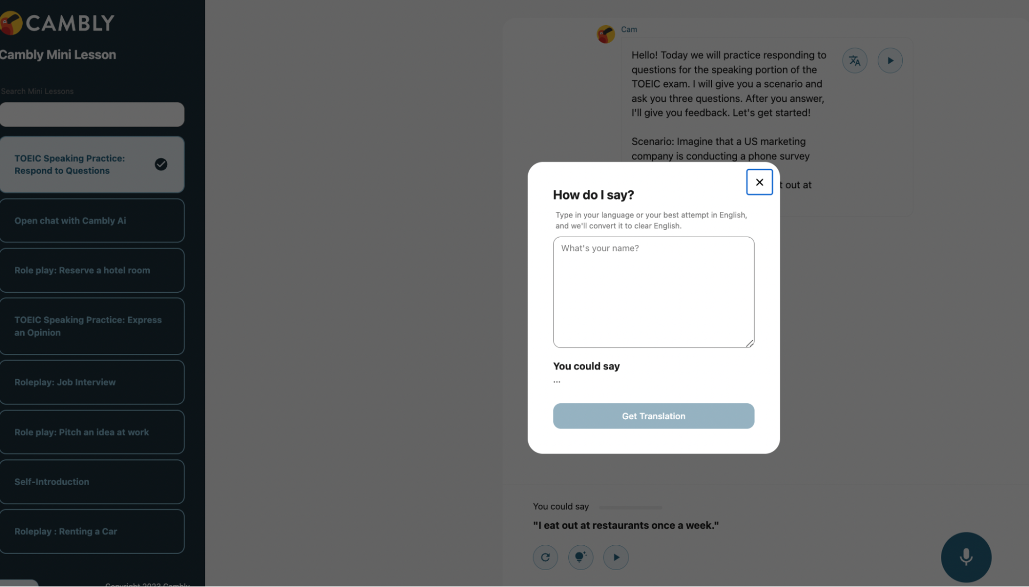 *Cambly AIの利用にはCamblyの無料会員登録が必要になります。