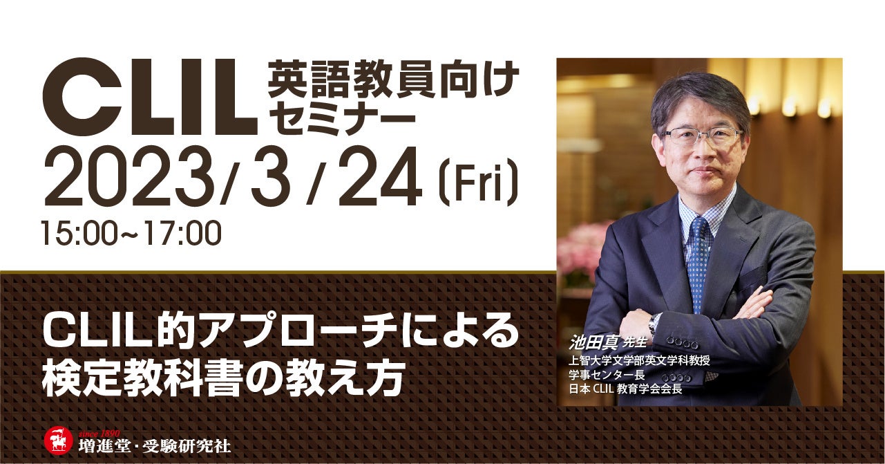 英語教員向けCLILセミナー『CLIL的アプローチによる検定教科書の教え方』を増進堂・受験研究社が3月24日に開催!