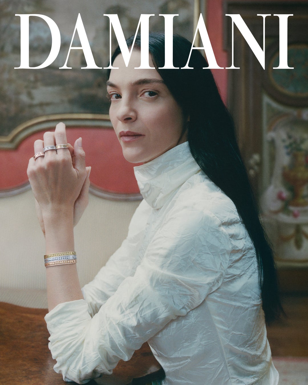 ダミアーニのグローバル ブランドアンバサダーであるI.N(アイエン)は、ブランドを代表するアイコニックなコレクション、ベル エポック、マルゲリータ、ミモザ、ベル エポック・リールをエレガントに纏ってブランドの世界観を表現しています。さらに、イタリアの象徴的なスーパーモデルのマリアカルラ・ボスコーノ(Mariacarla Boscono)は、マスターピースやアイコニックアイテムを纏ってタイムレスなイタリアンエレガンスを体現。
