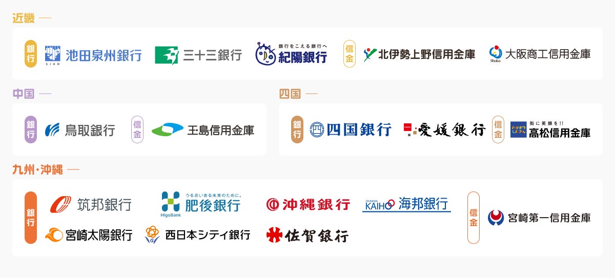 鳥取銀行、筑邦銀行、八十二銀行、肥後銀行、四国銀行、池田泉州銀行、秋田銀行、三十三銀行、愛媛銀行、北日本銀行、沖縄銀行