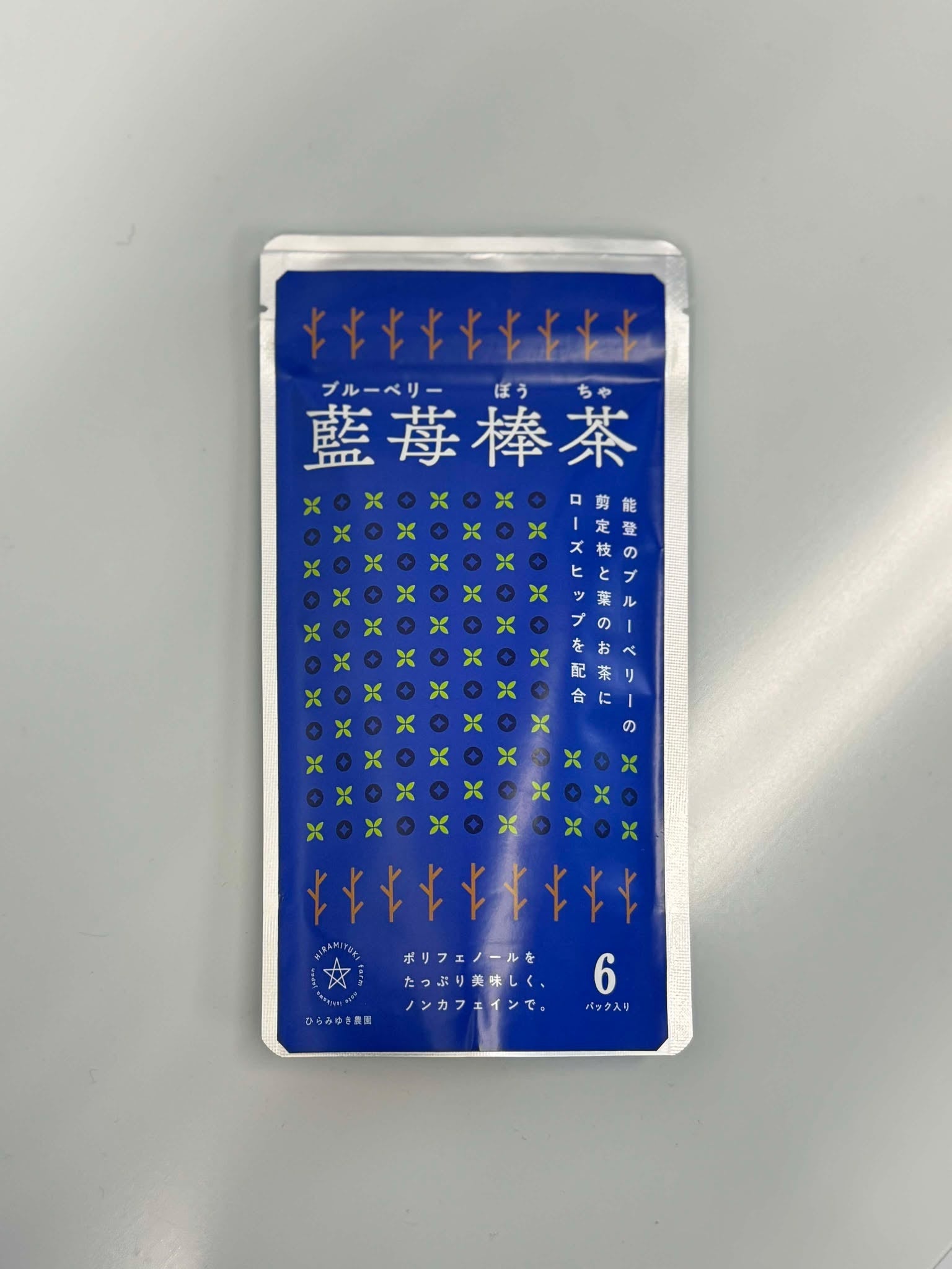 ブルーベリーの名産地、能登町のブルーベリーを剪定した際の枝を活用できないかと開発された新しいお茶。棒茶の香ばしさとハーブティーの酸味を楽しめる上、ブルーベリーの枝と葉には抗酸化物質がたっぷり。
