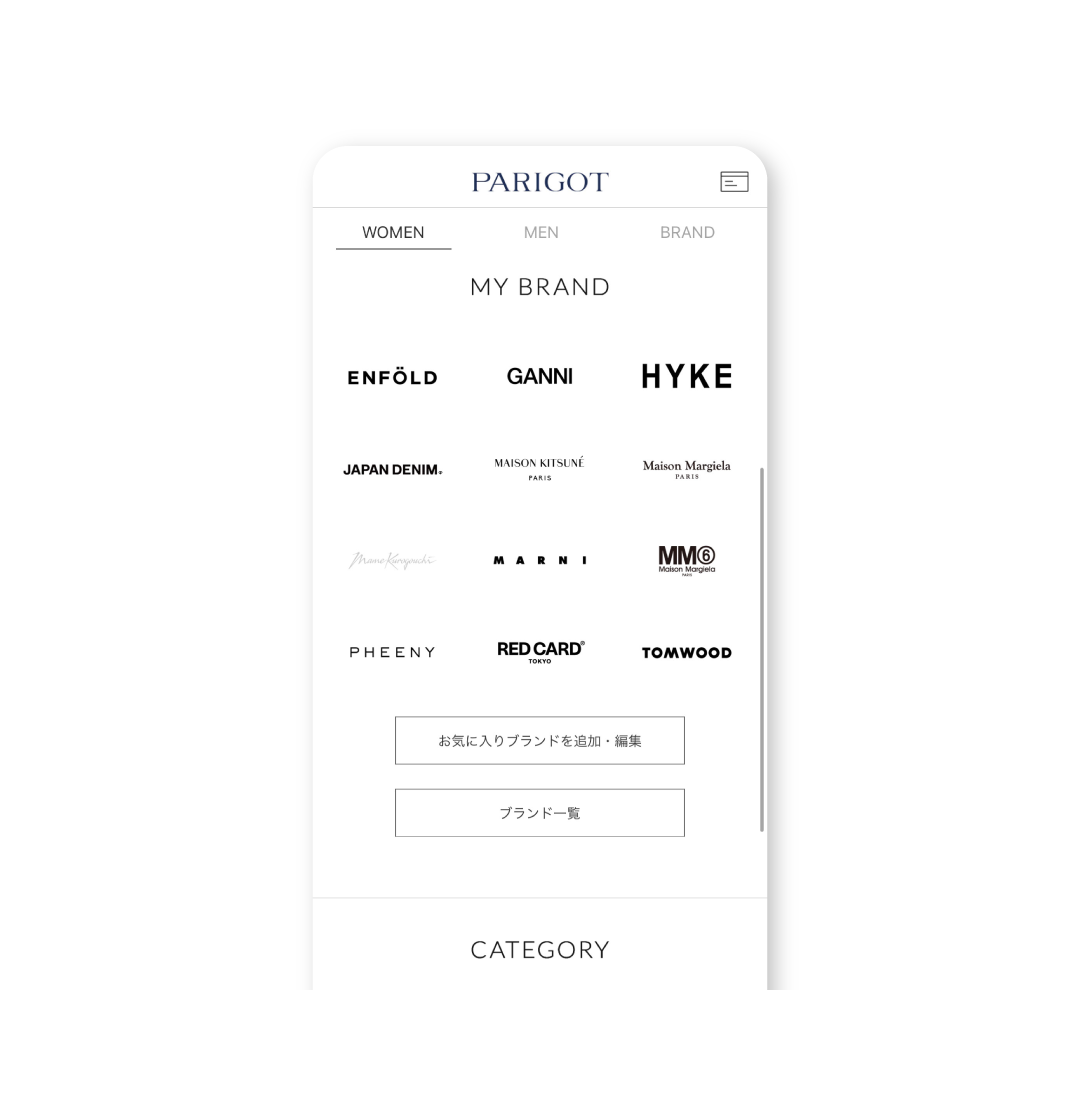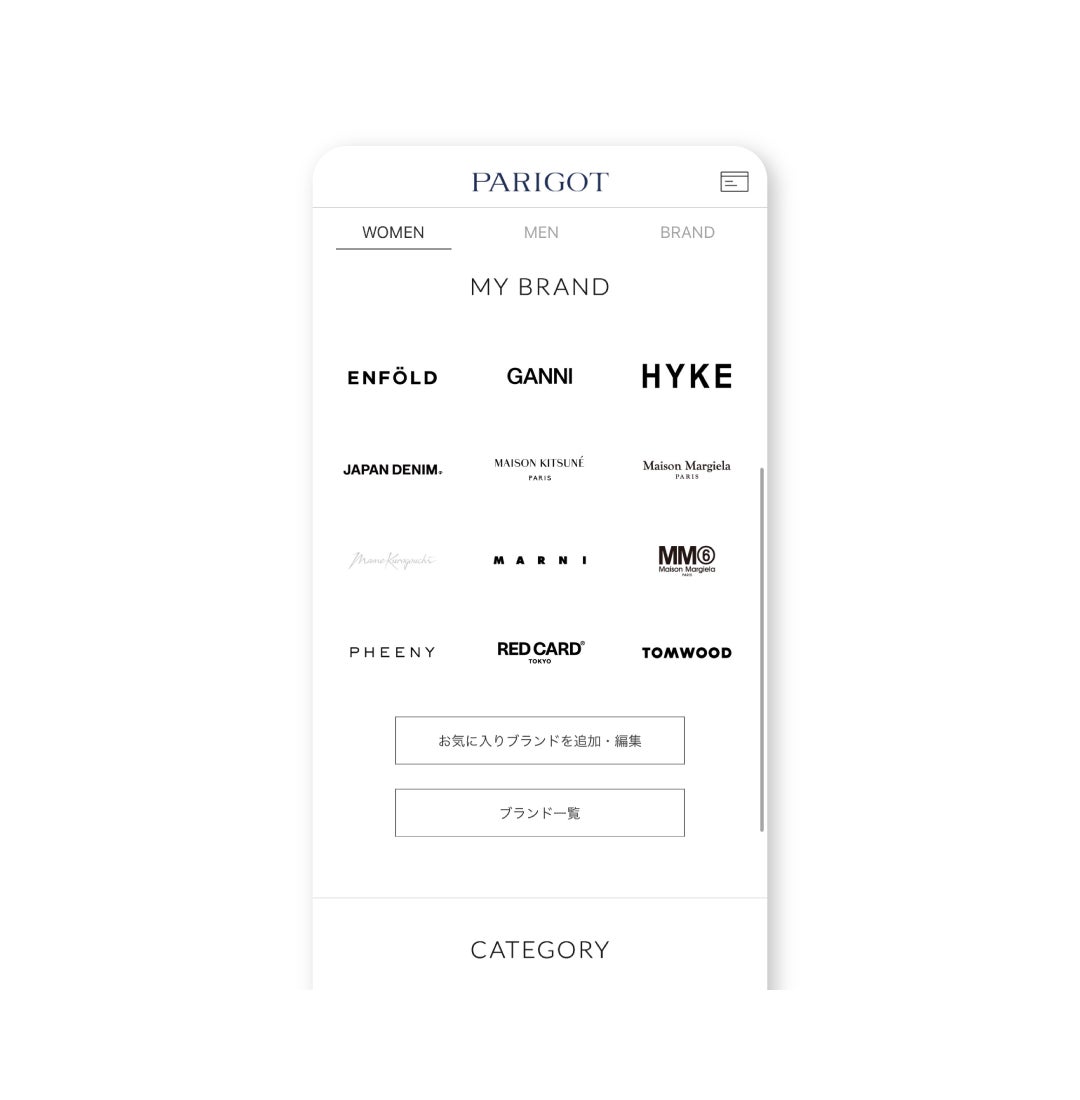 お好きなブランドをマイブランドに登録することで、いつでもマイブランドの商品一覧にアクセスできます。