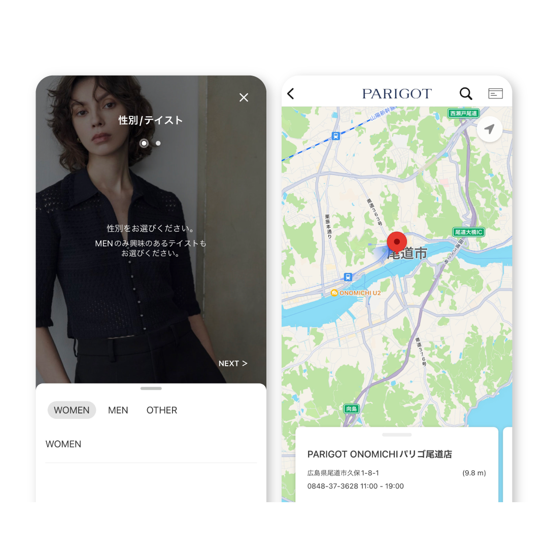アプリ登録時に性別や店舗などを選ぶことで、自分に合った情報をチェックしやすくなります。