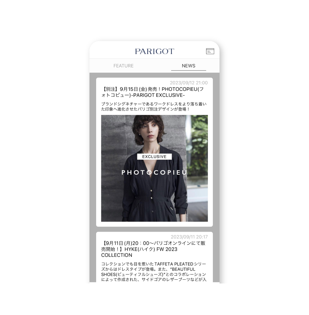 パリゴオンラインや店舗の最新のニュースをお知らせします。入荷情報やイベント情報はもちろん、セールやクーポンなどお得な情報もチェックいただけます。