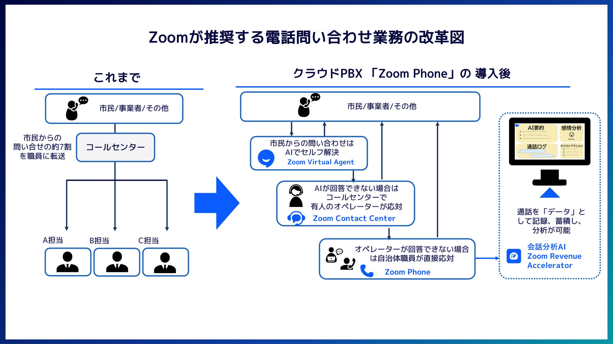 こうした背景のもと、ZVC JAPAN との協定締結を通じて、これまで改革が困難であった電話業務における DX の推進を図ります。
