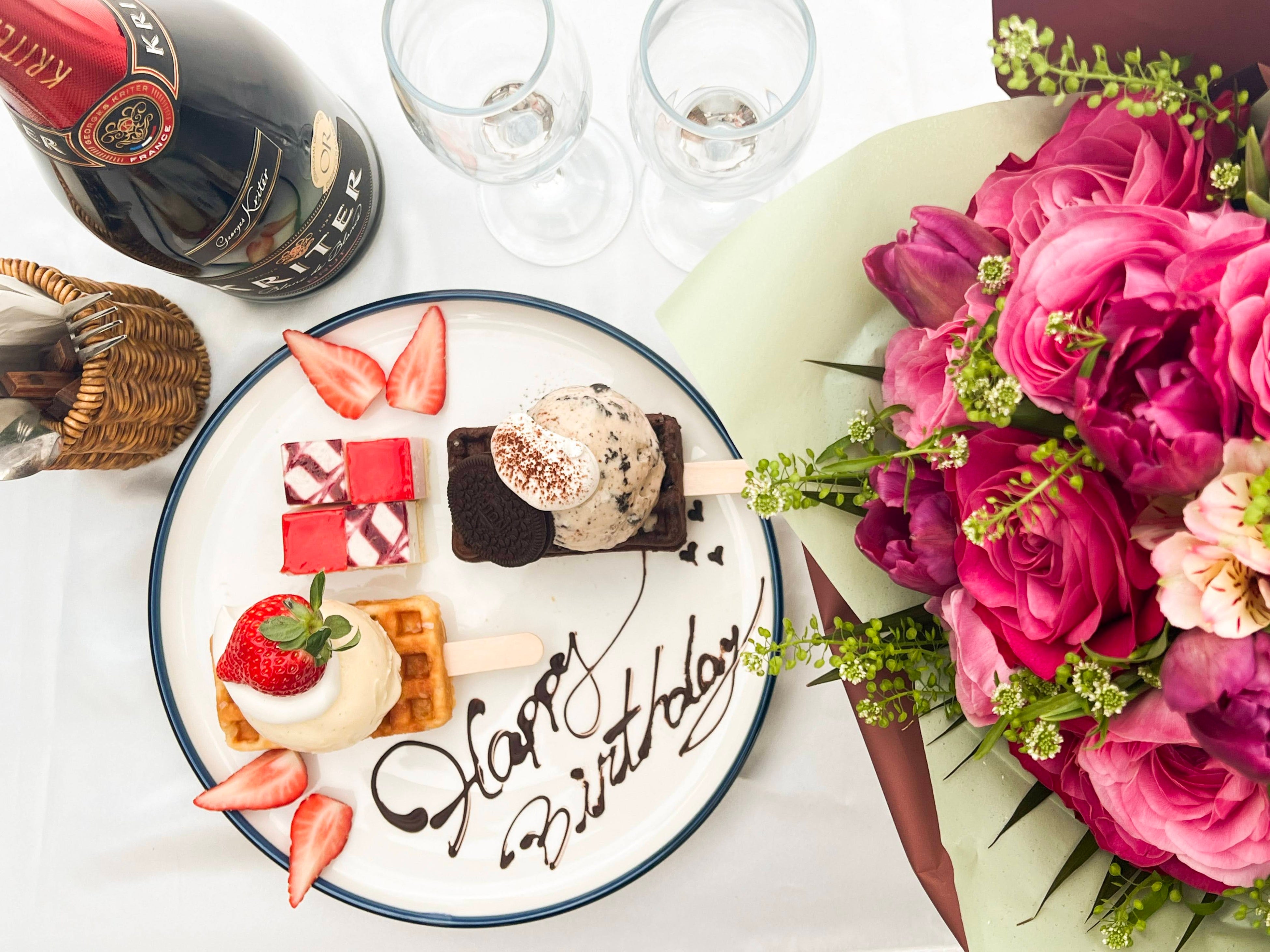 対象のプランをご予約のお客様へは、母の日限定BOX(食べる花束 ワッフルブーケ4本)をお付けいたします。