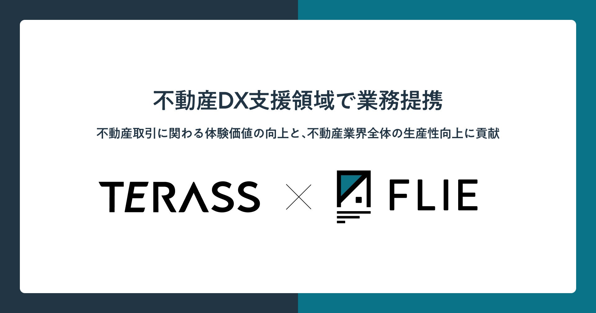 TERASSとFLIEが不動産DX支援領域で業務提携。TERASSエージェントへの「FLIE de 物確」導入と、全国の不動産事業者へのDX支援パッケージ「FLIE ONE」販売提携を開始