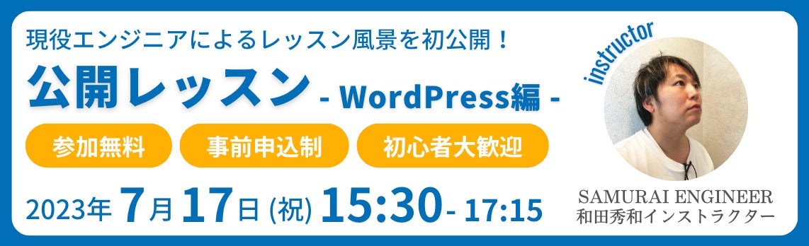 株式会社SAMURAI(本社所在地:東京都千代田区、代表取締役 :高比良 直人、以下:当社)は、7月17日(海の日)に2つの「特別公開イベント」を開催します。侍エンジニアの受講生・卒業生でない方も参加可能ですので、ぜひ奮ってご参加ください。