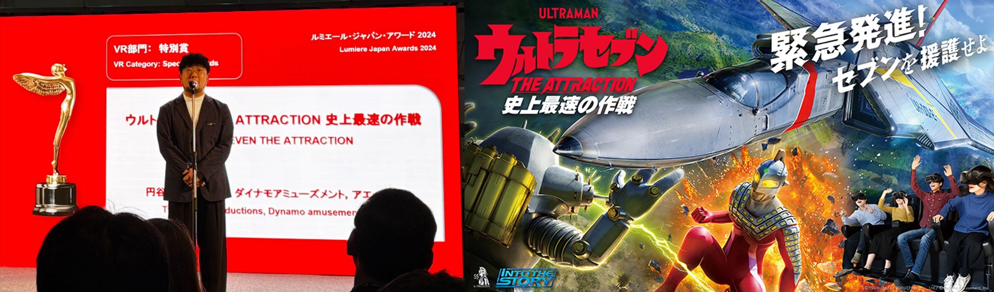 株式会社GENDA(本社:東京都港区、代表取締役会長:片岡 尚、代表取締役社長:申 真衣、以下「当社」)のグループ企業である株式会社ダイナモアミューズメント(東京都千代田区、社長:小川直樹、以下:ダイナモアミューズメント)が、株式会社円谷プロダクション(本社:東京都渋谷区、代表取締役会長 兼 CEO:塚越隆行、以下:円谷プロダクション)と共同で開発した、特撮ヒーロー「ウルトラセブン」初の体験型VRアトラクション、『ウルトラセブン THE ATTRACTION 史上最速の作戦』が、先進映像協会日本部会が主催するルミエール・ジャパン・アワード2024において、VR部門で特別賞を受賞いたしましたのでお知らせいたします。
