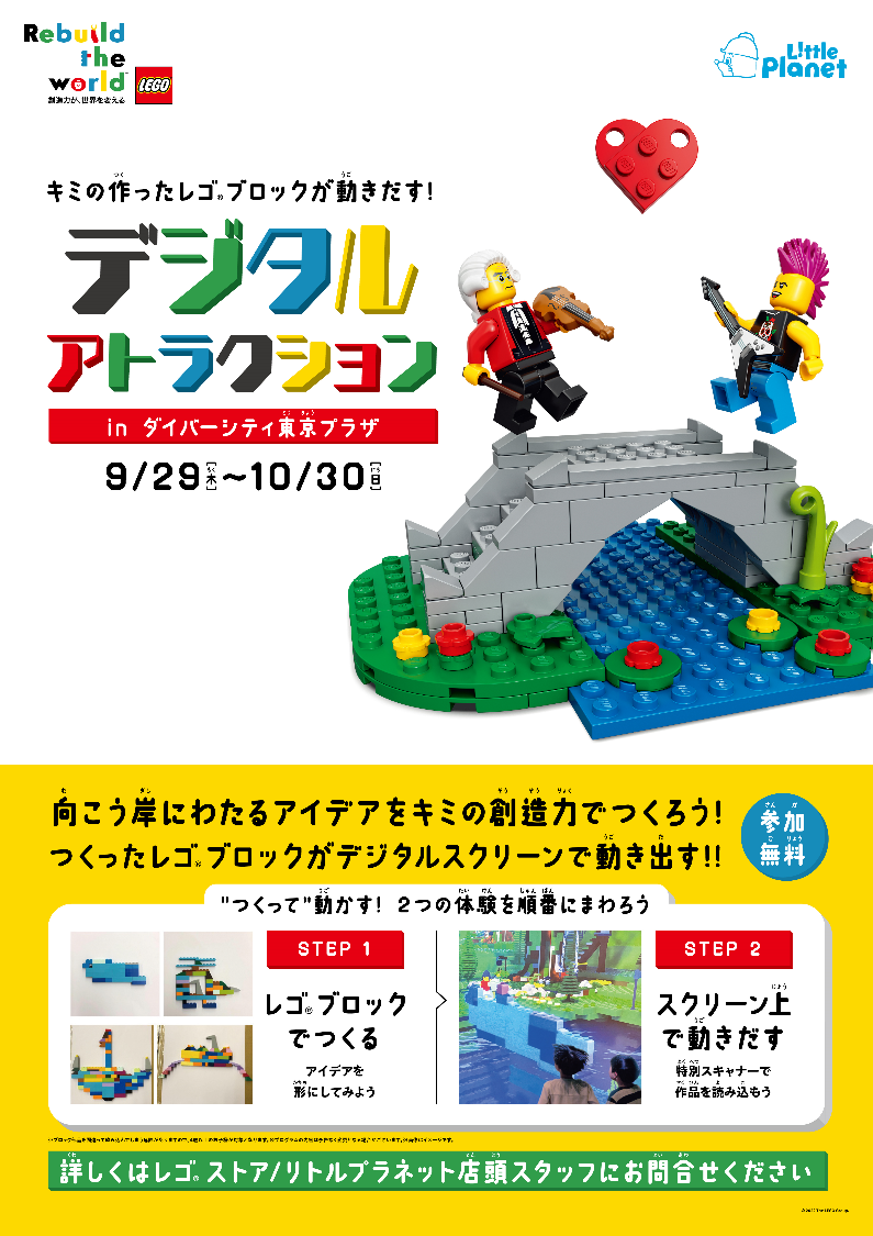 CMの“その先”を自分の作品で作ろう!9月29日よりリトルプラネット ダイバーシティ東京 プラザにて、「キミの作ったレゴ®ブロックが動きだす ! デジタルアトラクション」が期間限定で登場!