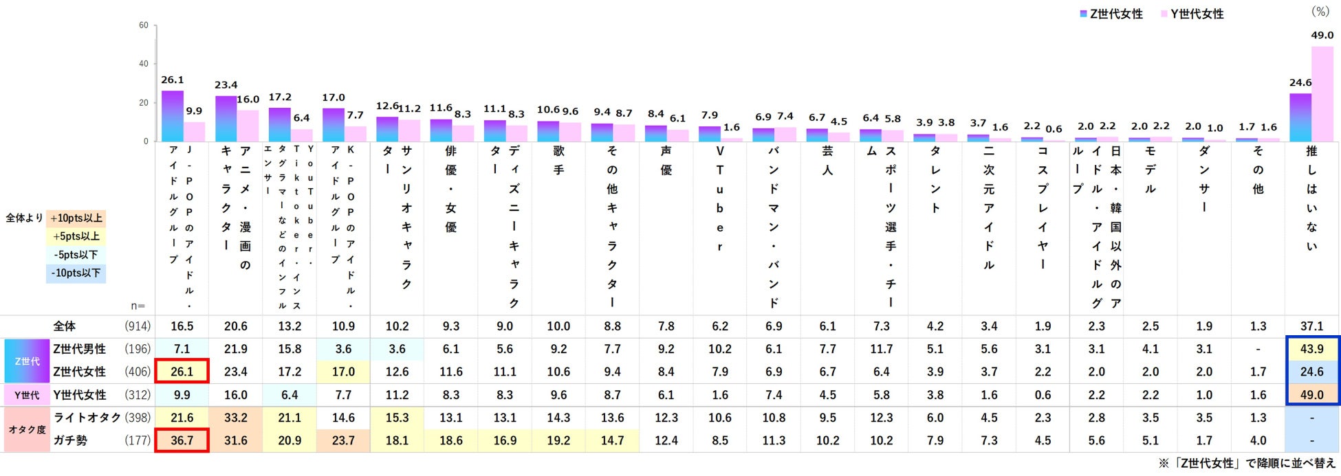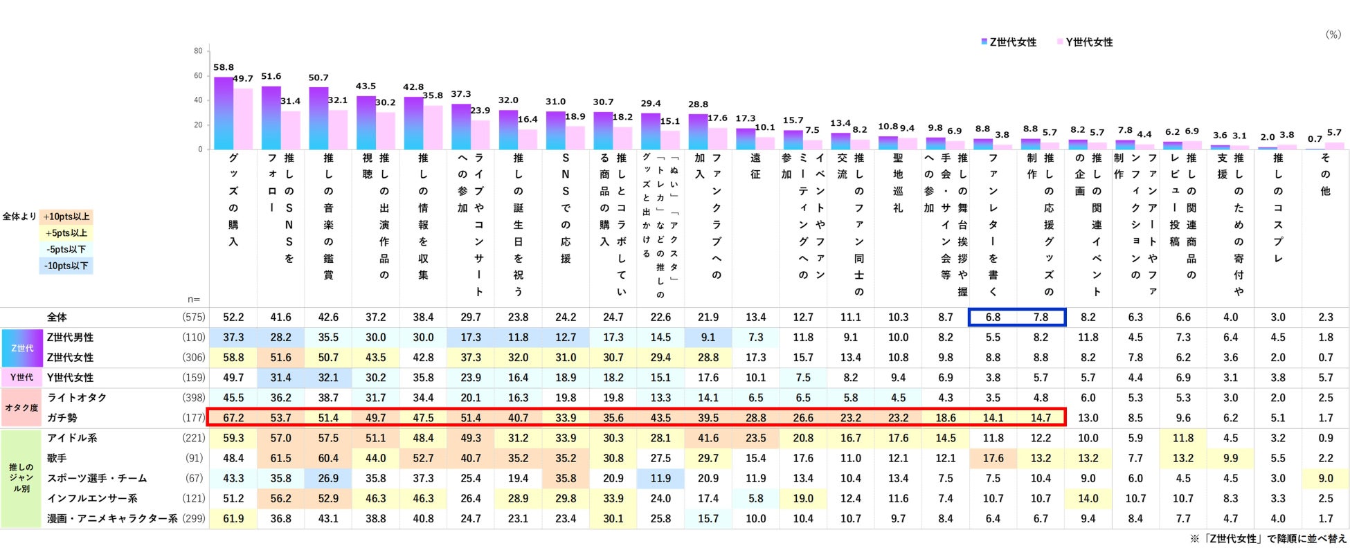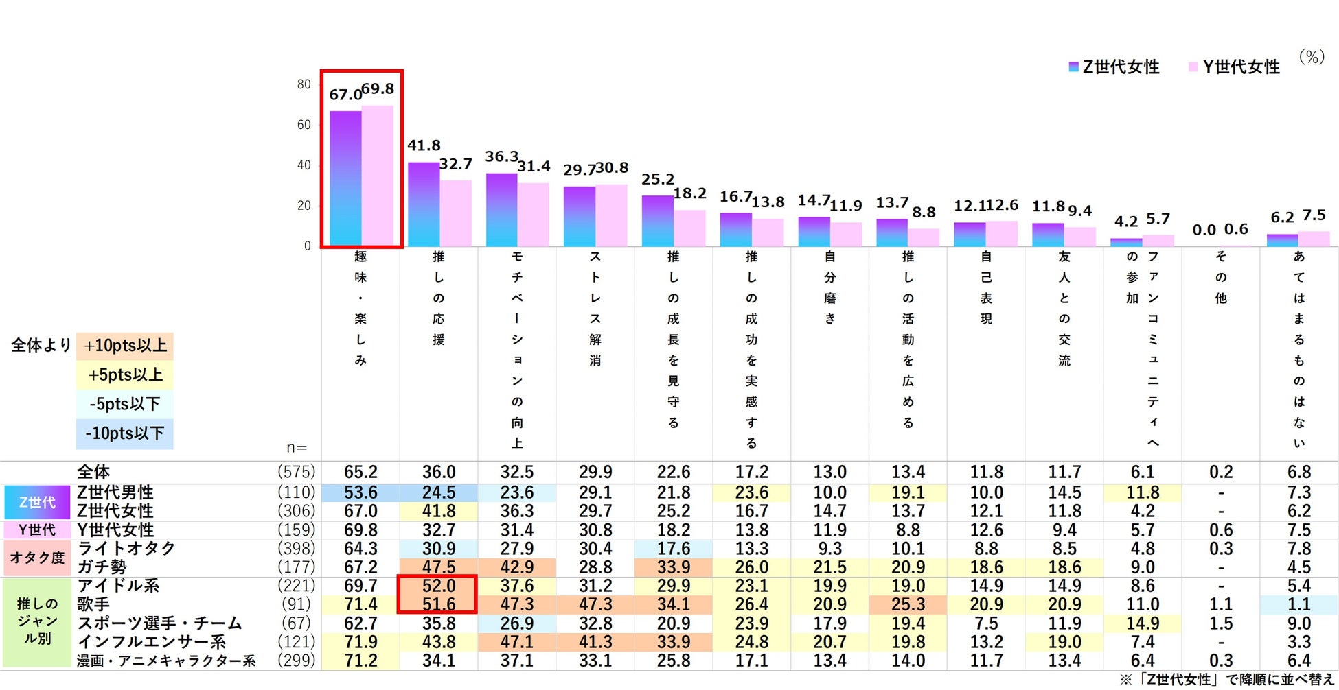 1.Z世代女性は推し活に時間と投資を注ぐ人の割合が最も高い一方、Y世代女性は家庭との両立で制約も