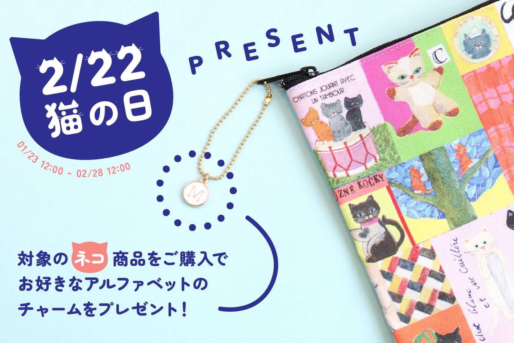 猫の日を記念して、期間中対象アイテムをご購入いただくと、もれなくお好きなアルファベットチャームをプレゼントいたします。