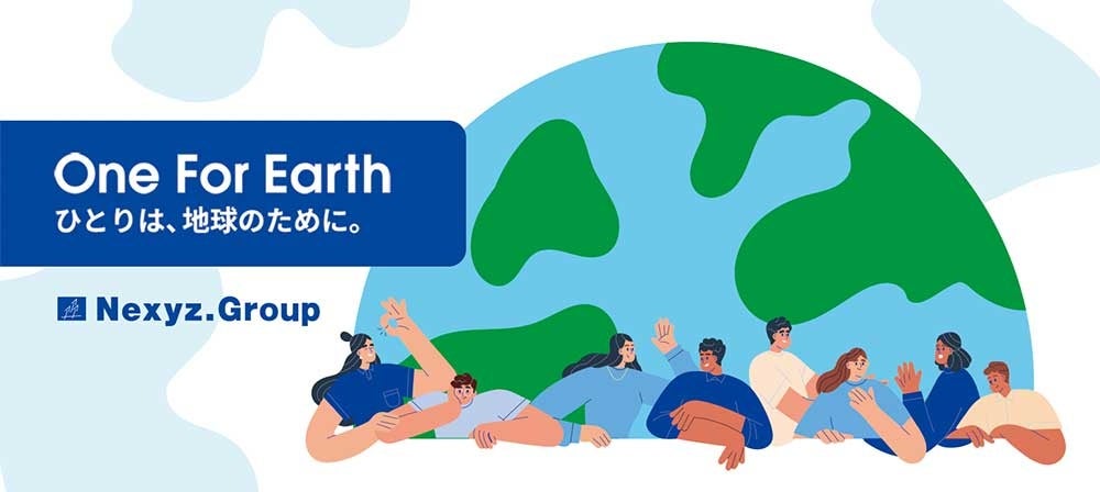 環境保全活動スローガン「One For Earth ひとりは、地球のために。」を掲げ、NEXYZ.グループの環境についての考え方、事業を通じて全社員が取組む目標と進捗を、数字とイラストでわかりやすくご紹介しています。