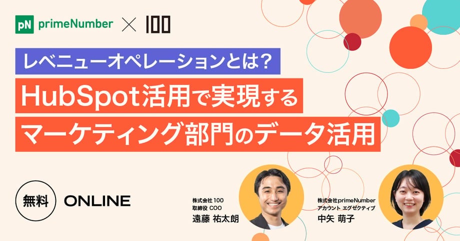 10月10日(木)、株式会社100と株式会社primeNumberが「HubSpot活用で実現するマーケティング部門のデータ活用 ~レベニューオペレーションとは~」共催ウェビナーを開催