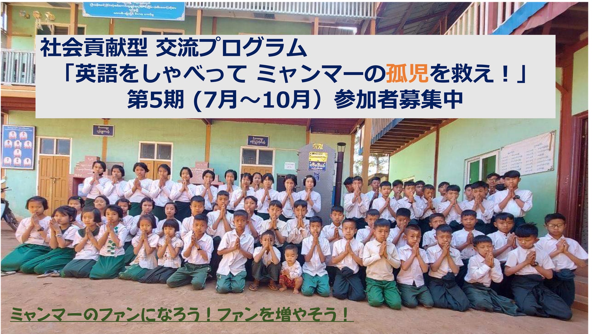 【〆切7/24】社会貢献型プログラム「英語をしゃべってミャンマーの孤児を救え!」 第5期(7月29日~2024年2月3日)の参加者募集!