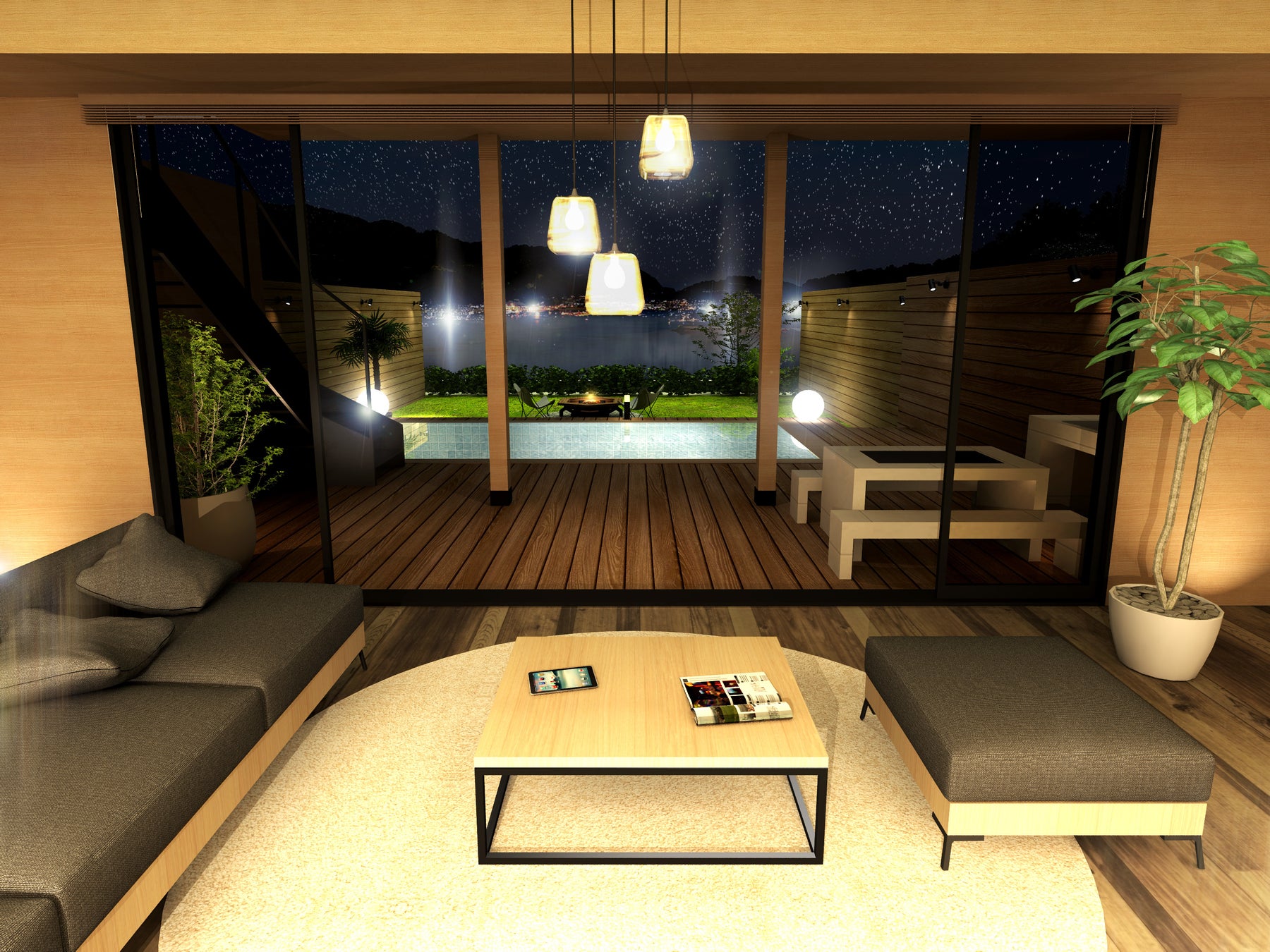 お部屋には、天然温泉、愛犬も大満足のプライベートドッグランを備えており、屋上には視界を遮ることなく景色や星空を楽しむ展望スペースをご用意しております。