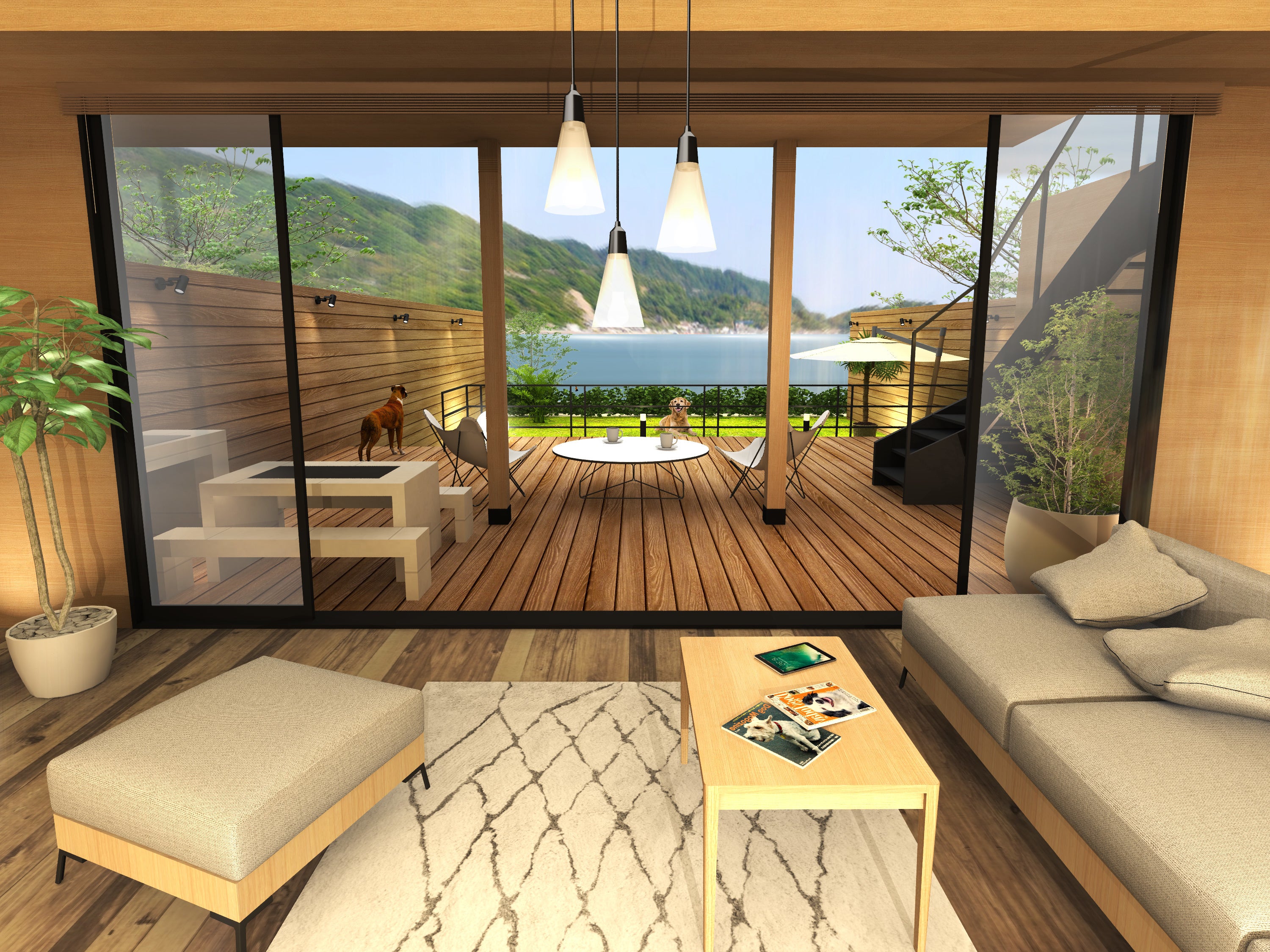 愛犬と泊まれるプライベートドッグラン付きのオーシャンビューヴィラ。