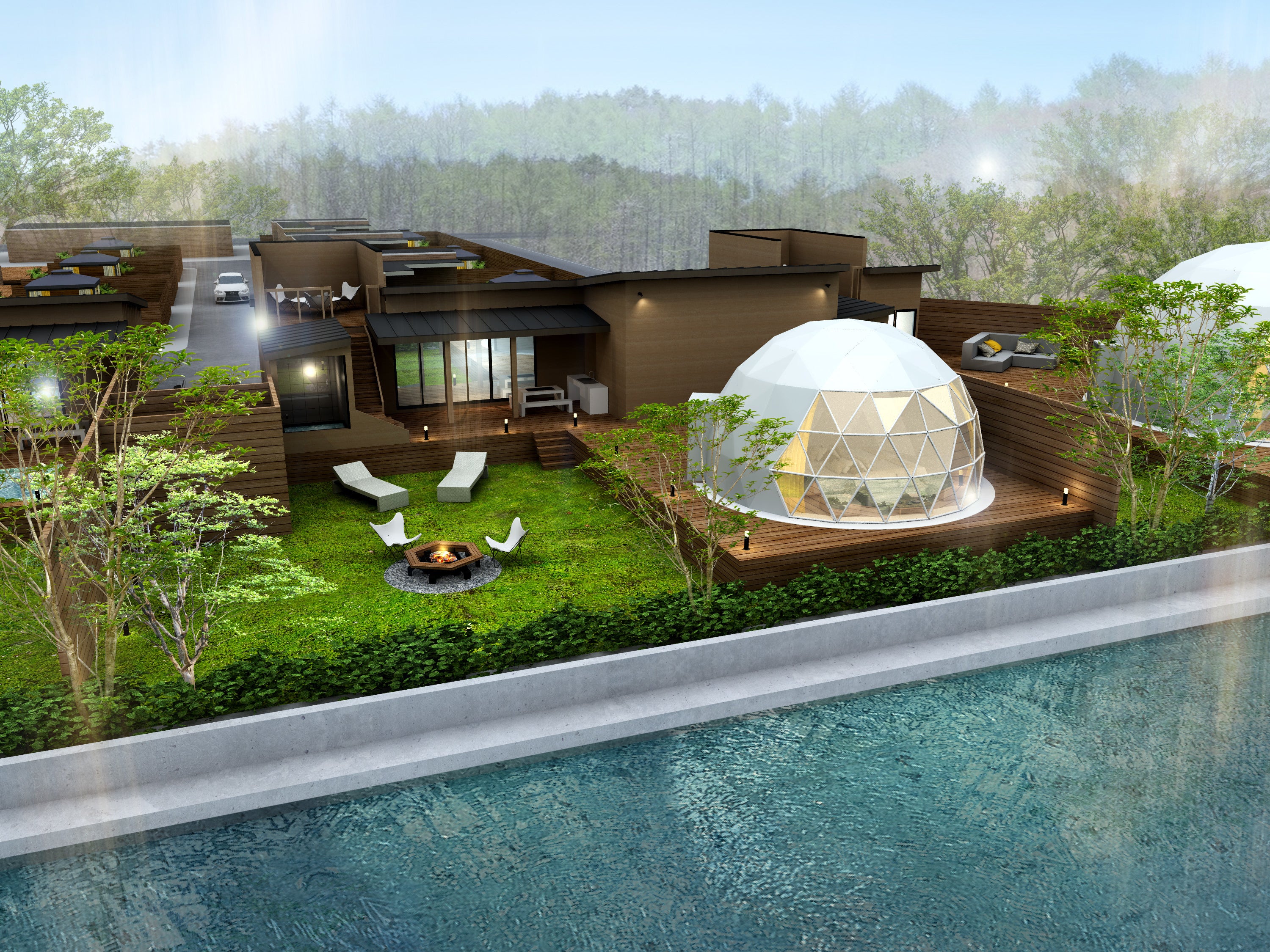 2021年の開業から1周年を迎えたこのグランピング施設は、1年間での稼働率83%と実に多くのお客様にお越し頂きました。空室待ちの多くの声にお応えすべく、この度8棟4タイプのスイート仕様のヴィラタイプ客室を2022年8月20日にグランドオープン致します。