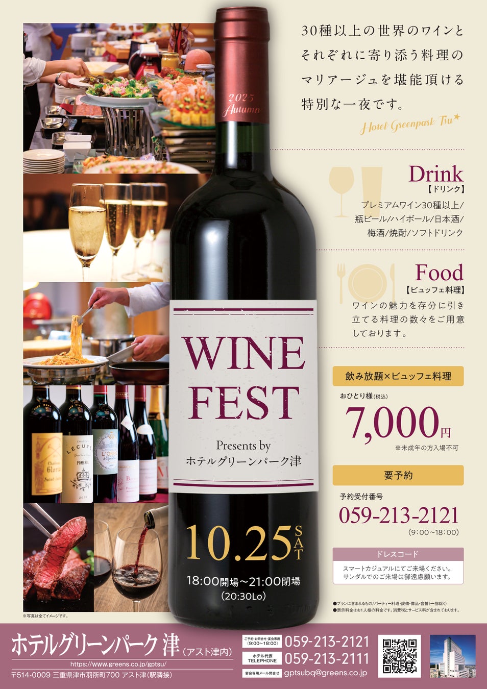 「WINE FESTワイン×料理の祭典」開催 2025年10月25日(土)ホテルグリーンパーク津