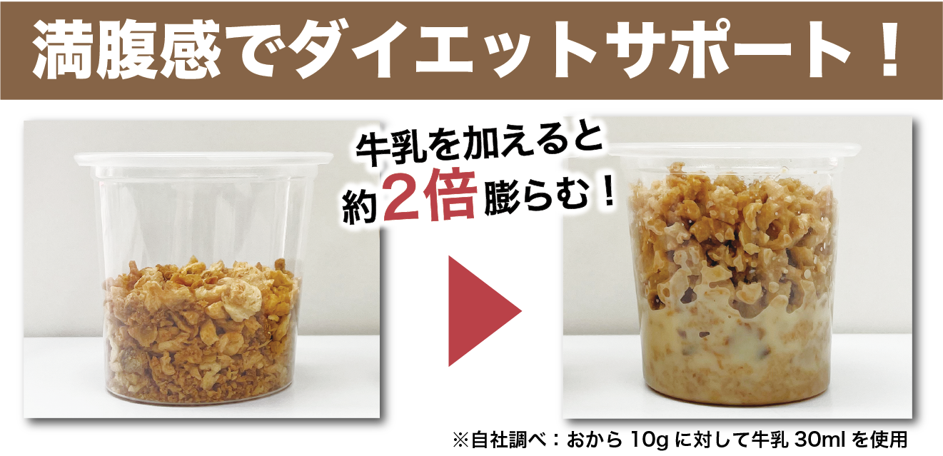 100%佐賀県産大豆と脊振山の湧き水で職人が手作りし、モンドセレクション最高金賞を受賞した五ケ山豆腐。その五ケ山豆腐のおからは豆乳を1回しか搾っていないため、通常のおからに比べ、栄養がたっぷり残っています。口当たりもしっとりふわっふわのおからです。