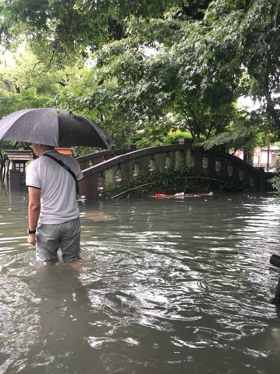 佐賀市は、地域の地理的特性を踏まえた「流域治水」の取り組みを進めており、全国初の試みである「お濠貯留」に関する実証試験を実施しました。お濠の周辺地域の浸水被害の軽減を図るため、佐賀県所有の排水ポンプ車「ひので」の協力により、「自然排水」時の5万8,000トンの容量に追加して、約6,400トンの雨水を貯めることが可能となりました。