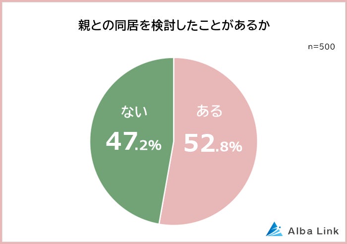 今回、株式会社AlbaLink( https://albalink.co.jp/ )が運営する訳あり物件買取プロ( https://wakearipro.com/ )は、親と離れて暮らしている社会人500人を対象に「親との同居」についてアンケート調査を実施しました。