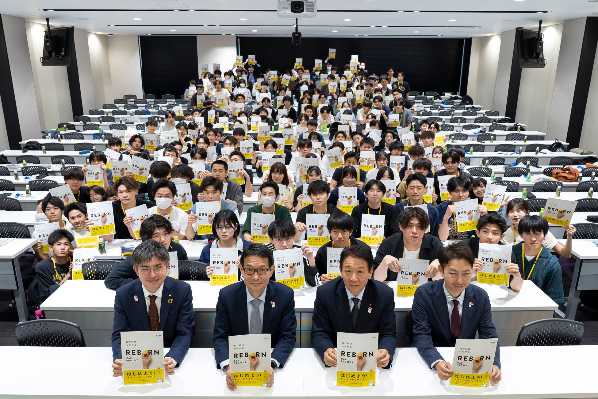 先日、日本山村硝子株式会社の皆様をお招きして行われた「環境問題とペットボトルキャップのリサイクル」をテーマにした特別講演の様子をお届けします。この講演には、公務員総合科1年生約180名が参加し、ペットボトルキャップの製造における高度な技術や、循環型社会の実現に向けた想いに触れました。