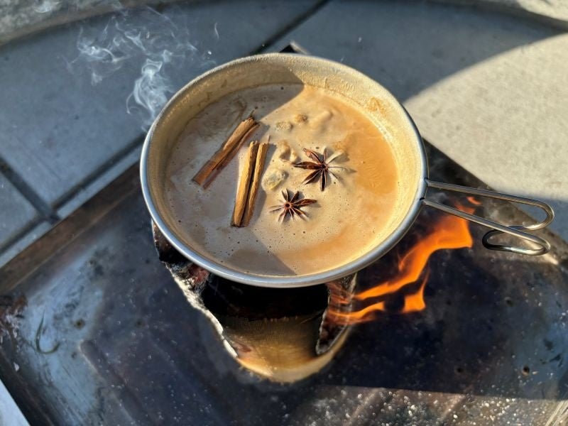 ・焚火で煮出す温活ドリンク「ホットチャイづくり」