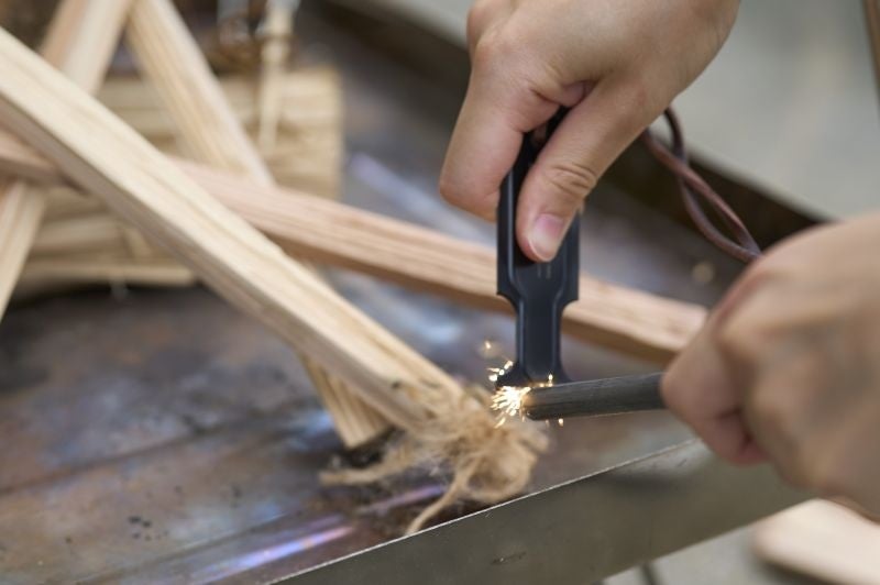 焚火マイスターによるファイアースターターを使った「火起こし体験」を開催いたします。ライターやマッチなどを使わず、 現代の火打ち石である「ファイアースターター」 と麻紐や杉の枝や葉など自然のものだけを使ってゼロから火起こしをする体験プログラムです。火起こしのプロセスを学びながら、火が起こせた瞬間の喜びや達成感を味わっていただけます。