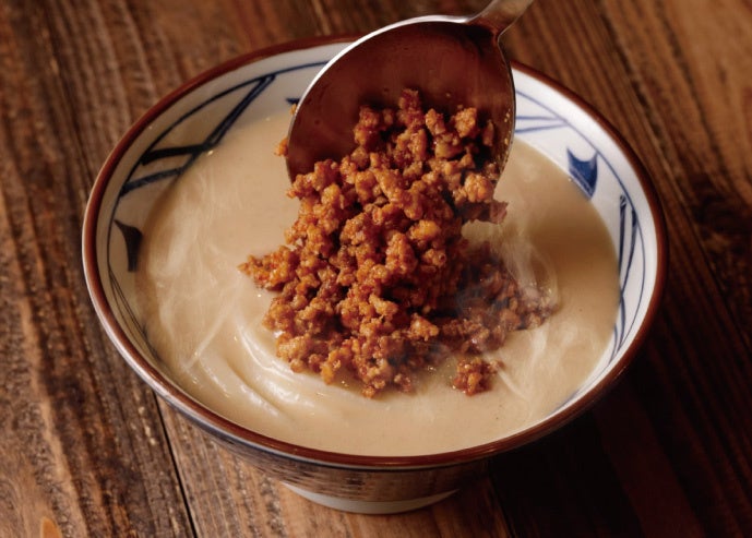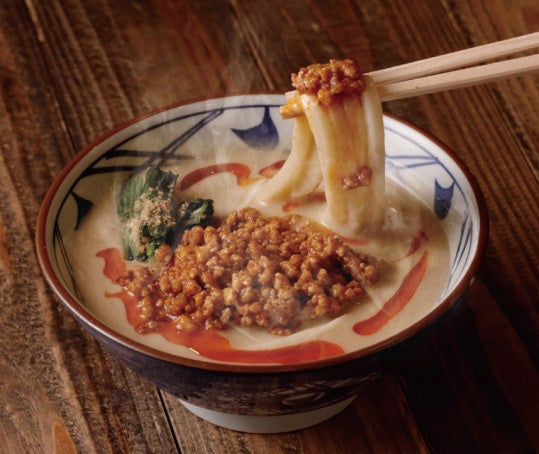 北海道産真昆布や複数の削り節から引く白だしの豊かな風味と、濃厚な胡麻の旨みが感じられるように仕上げました。胡麻ペーストをたっぷりと加えた担々スープは、丸亀製麺ならではの味わい。
