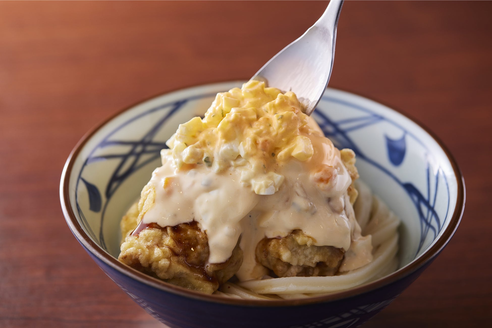 大人気『タル鶏天ぶっかけうどん』の新作がいよいよ登場。打ち立てのうどんに、特製南蛮だれがたっぷりとしみ込んだジューシーな鶏天、そしてそこに合わさる2種類のタルタルソースがボリューム満点。濃厚な味わいながらも、タルタルソースと南蛮だれから感じられる酸味、のど越しのよいうどんがバランスよく調和し、最後のひと口まで、やみつきになるおいしさを生み出します。
