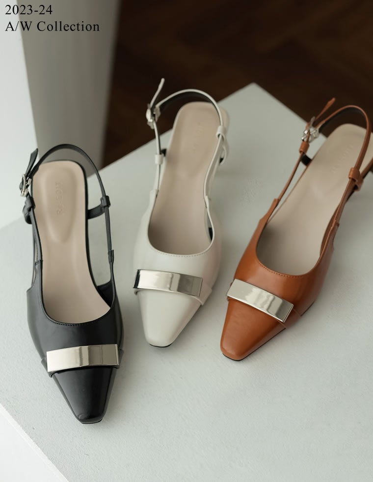 ポインテッドトゥシルバーモチーフデザインミュールパンプス