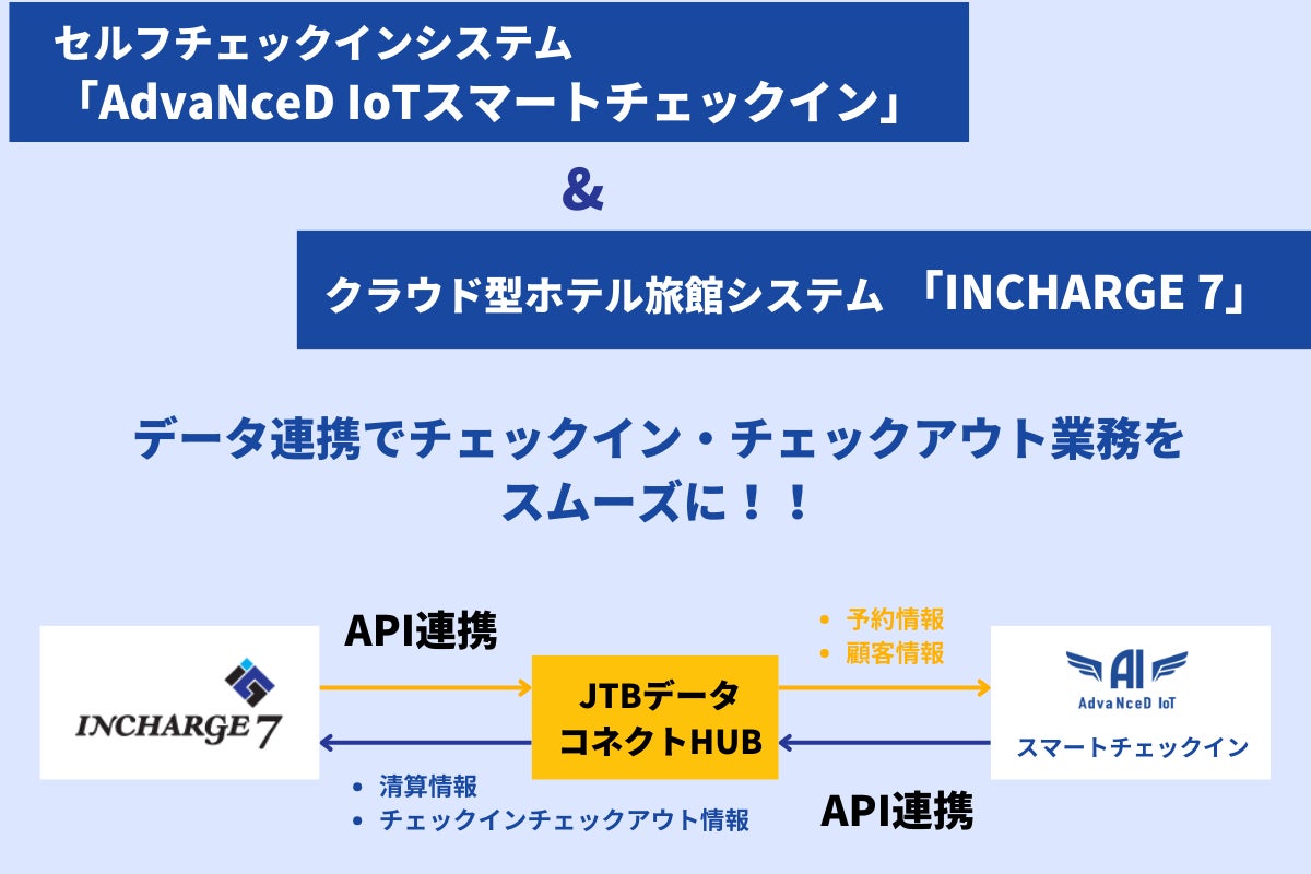 「AdvaNceD IoTスマートチェックイン」が宿泊事業者デジタル化支援システム「JTBデータコネクトHUB」 を通じて、クラウド型ホテル旅館システム「INCHARGE 7」と連携しました!