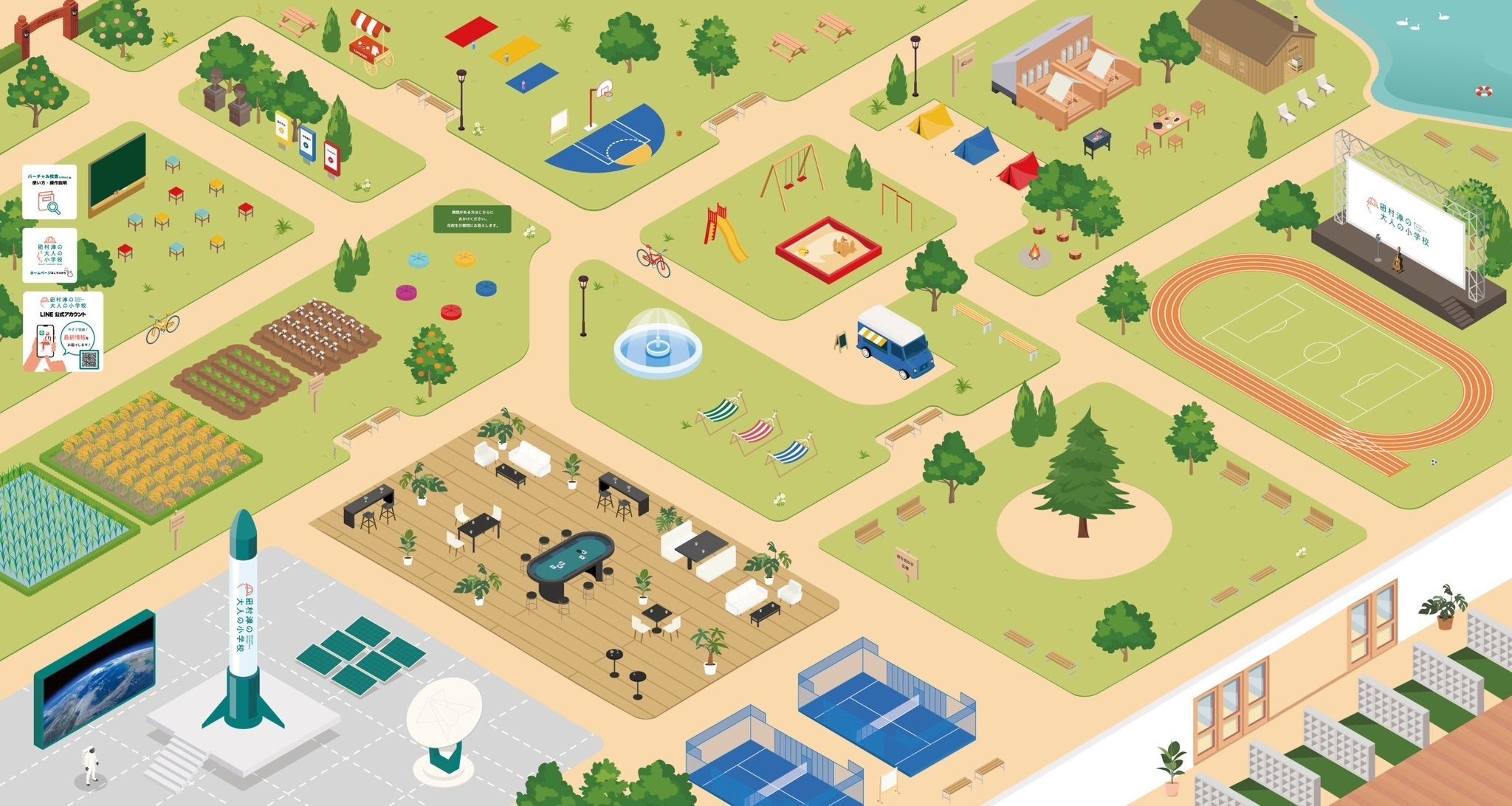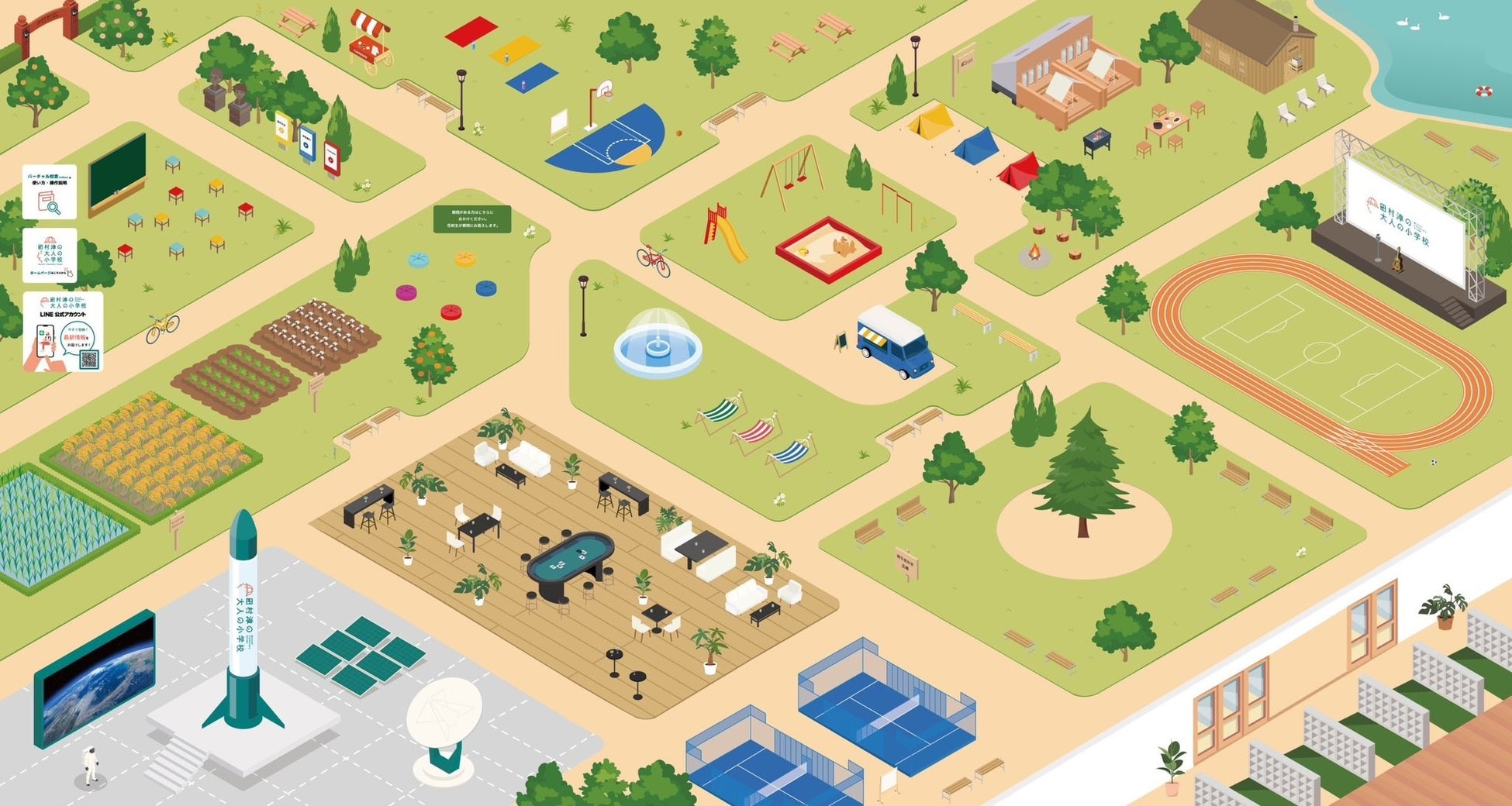oViceは、2022年8月に「ひとりではできないことを、みんなでかたちにしていく場所」をコンセプトにし、住む場所も価値観も世代も異なるさまざまな人が集うオンラインサロン「田村淳の大人の小学校」と協業し、東京都豊島区にある「田村淳の大人の小学校」のリアルな校舎(通称:池袋秘密基地『gather』)と連動したバーチャル校舎「すごい校舎」共同開発することを発表しました。