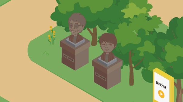 1階(校庭)は、「田村淳の大人の小学校」のオンラインサロンメンバーの方以外も入れる交流の場(URL:https://tamusho-playground.ovice.in/ )としてオープン。入口付近には校長である田村淳さんらの銅像が置かれています。また、ギターの弾き語りができるステージや、修学旅行で打ち上げられたロケット、静岡県にある「あさぎりフードパーク」に作られた移動式校舎(トレーラーハウス)を模した建物が設置されているなど、「田村淳の大人の小学校」のこれまでの取り組みや世界観に触れられる場となっています。