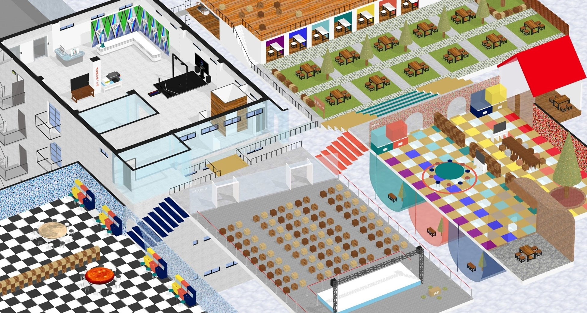 バーチャル空間「oVice」を使用し、24時間世界中どこからでもアクセスでき、隣で話しているようなコミュニケーションが可能な8階建てのバーチャル校舎を建設しました。