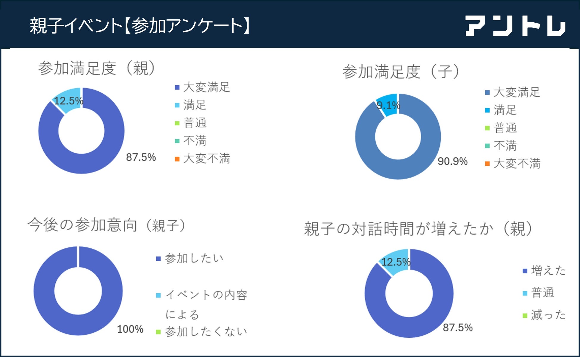 【参加者アンケートでは、親・子ともに参加満足度が100%】