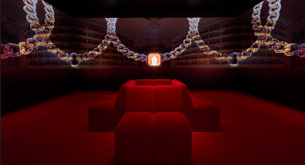 2つ目のエリアは「Supreme Mastery(至高の技能)」というコンセプトで、ポメラートの製作技術の伝統に敬意を表し、ミラノの熟練した職人らによる数世紀にわたるクラフツマンシップの遺産を継承しています。ミラノは、時代を超えて才能ある優れたクリエイターやアーティストを惹きつけてきました。ドゥオーモの壮麗さやヴィスコンティ家の影響力は、この地が過去も現在も最高の職人や金細工職人を惹きつけていることを物語っています。このセクションでは、ゴールドを手打ちしている様子を録音したサウンドインスタレーションを行っています。一打一打のリズムと正確さは、この熟練の技法と、ポメラートの工房で今日も行われているように、すべて手作業で生み出されるマスターピースの中核をなす人間性を思い起こさせます。